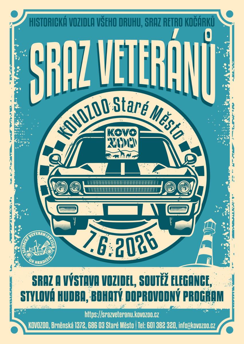 Sraz veteránů v kovozoo 2026 se bude konat 7. června 2026. Akce se tradičně koná v areálu kovozoo ve Starém Městě u Uherského Hradiště. Návštěvníci se mohou těšit na výstavu historických vozidel, jízdy historickým parním vlakem, retro kočárky a mnoho dalších aktivit. Podrobnosti o akci: Datum a čas: 7. června 2026 Místo: kovozoo Staré Město u Uherského Hradiště Hlavní atrakce: - Výstava historických vozidel (autobusy, traktory, motocykly, vojenská technika, atd.) - Jízdy historickým parním vlakem - Soutěž elegance historických vozidel - Jízdy na ruční drezíně - Retro kočárky a retro fotokoutek - Program pro děti (skákací hrad, malování na obličej, retro šlapací autíčka) - Kovárna a porodnice kovozoo s interaktivním programem - Koncert a vystoupení kapel |