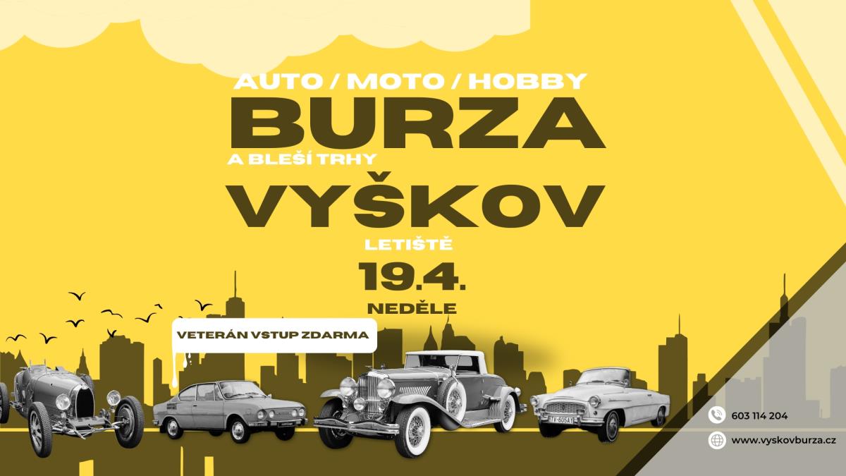 Přijďte na jedinečné Auto / Moto / Hobby a Bleší Trhy na letišti ve Vyškově! Ať už jste milovník aut, motorek, nebo hledáte poklady na bleším trhu, tady si přijde na své každý.
