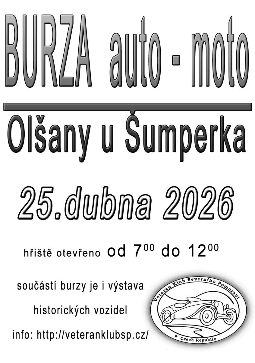 Burza náhradních dílů auto, moto, příslušenství, v Olšanech u Šumperka na hřišti od 7 hod.