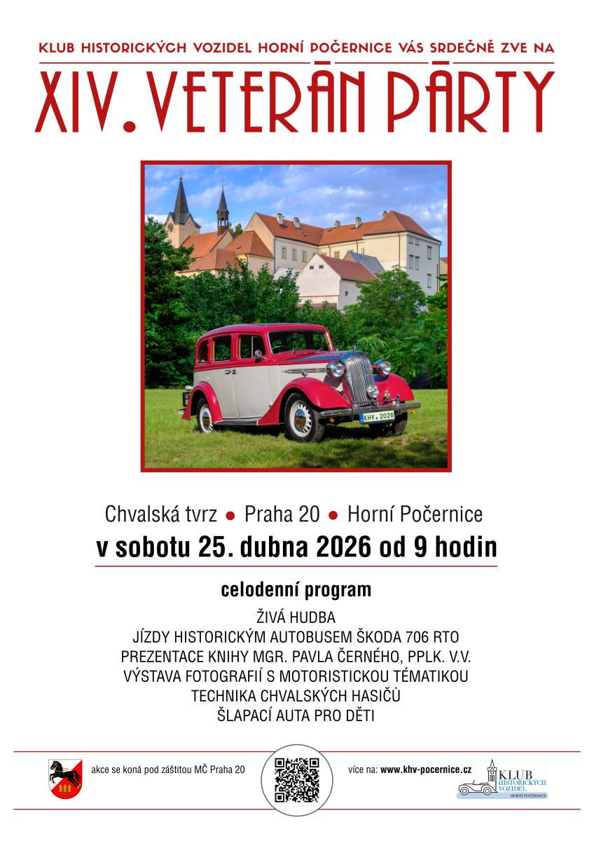 "Klub historických vozidel Horní Počernice Vás zve na tradiční setkání příznivců historických vozidel, motocyklů a jiných strojů do r.v.1970. Letos jsme pro Vás připravili bohatý program, který se bude konat na Chvalské Tvrzi a v přilehlé Chvalské Stodole. Na volné ploše Chvalské tvrze bude celodenní program s přehlídkou vozidel, divácké soutěže pro dospělé i děti, vyhlídkové jízdy historickým autobusem, občerstvení a živá hudba po celý den. Dále bude představení nové knihy pana Mgr. Pavla Černého, pplk. v.v., pro nejmenší účastníky budou připraveny šlapací autíčka a ukázky nové techniky Chvalských hasičů. Ve Chvalské stodole bude doprovodná výstava fotografií s motoristickou tématikou." |