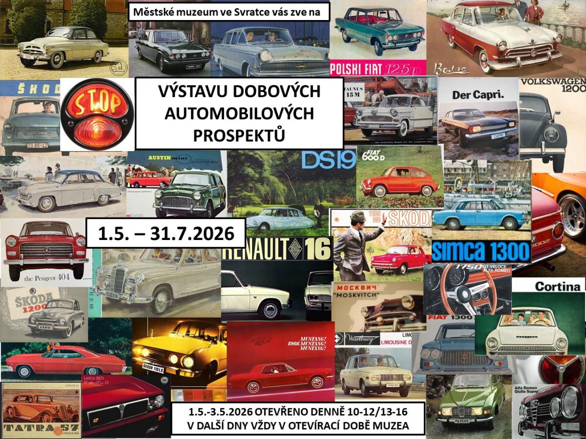 Výstava automobilových prospektů z celého 20. století v muzeu ve Svratce Otevírací doba: 1.-3.5.2026: 10-12/13-16 hodin poté v květnu a červnu: neděle 13-16 hodin červenec: denně mimo pondělí 10-12/13-16 |