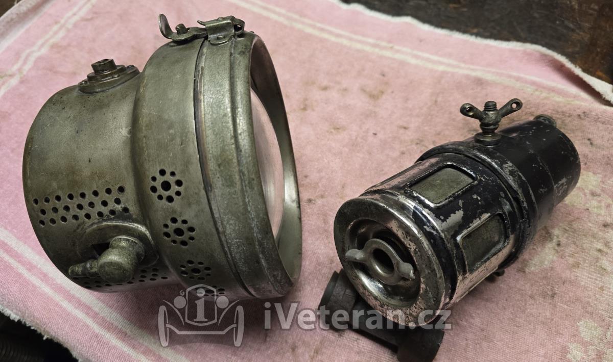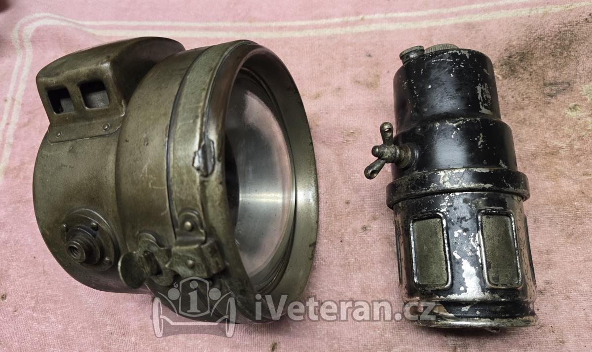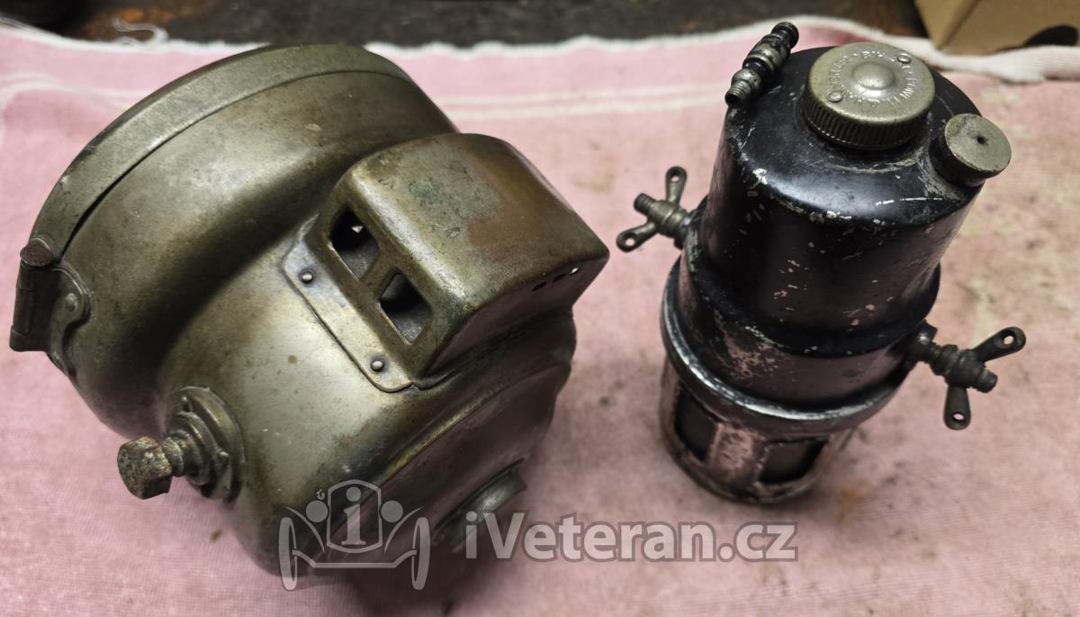 Na prodej karbidové světllo a acetylenový vyvíječ anglické značky PH...Powell and Hanmel ...na větší motocykl,ideálně z let 1915-1930.