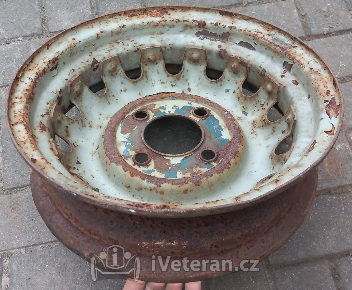 originál disk 4.00x15 na Škoda 1201 Sedan pozdější série, moc pěkný a zachovalý, menší koroze, pěkný kus k renovaci, vzácnější a méně vyskytující široké provedení disku na Škoda, rovný, nepomlácený, pěkné díry na šrouby, značen logem Vítkovic a rokem 63, průměr 41.5 cm, šířka 13.5 cm, rozteč děr 4x130 mm, středový otvor 85 mm, osobní odběr Žďár nad Sázavou nebo Přerov, zaslání dle tarifu možné (ČP balík, Balíkovna nebo PPL), více foto zašlu rád na vyžádání, v případě dotazu mě neváhejte kontaktovat