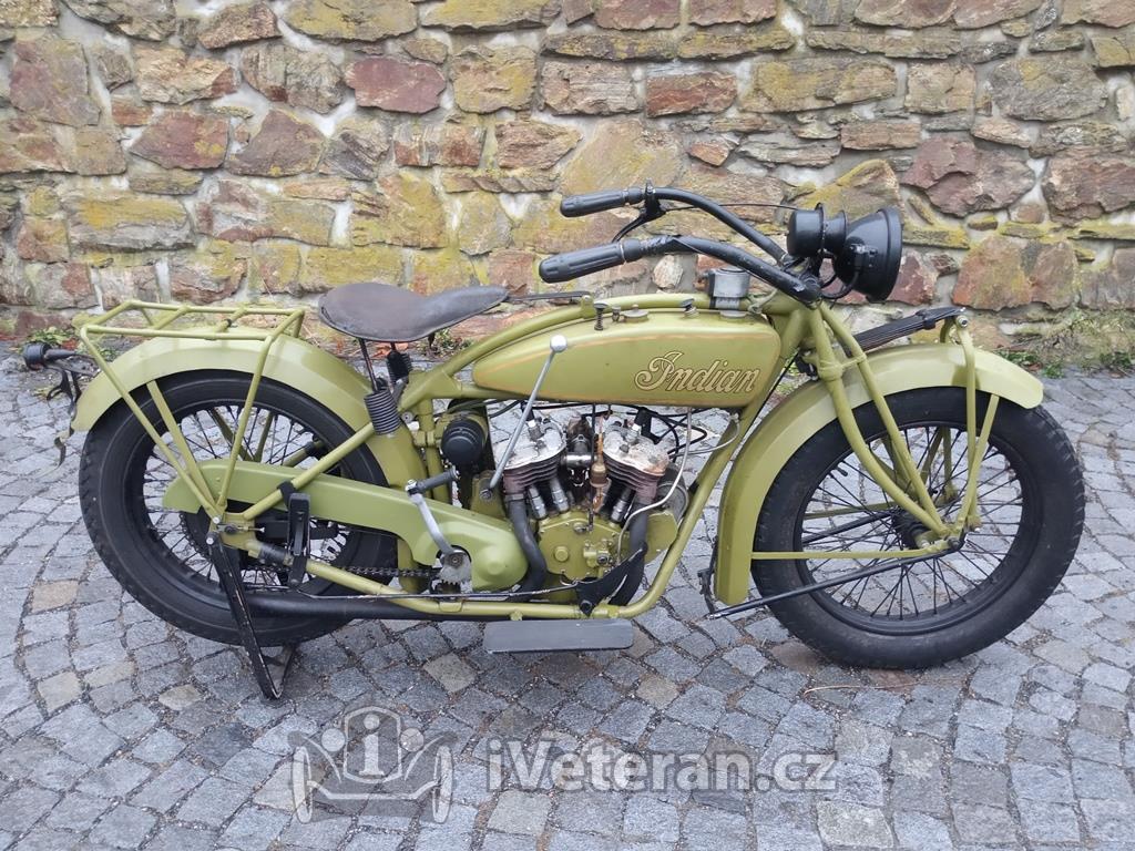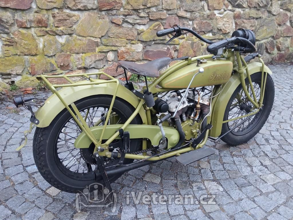 Motocykl Indian Scout 600, r.v. 1925, kompletní, pojízdný, po staré renovaci, švédské doklady. Zelená barva byla jako varianta pro švédský trh nabízena stockholmskou firmou Viklunds. Motocykl je k vidění v Bystřici nad Pernštejnem, podrobnosti telefonicky, další fotky vážným zájemcům rád zašlu e-mailem.