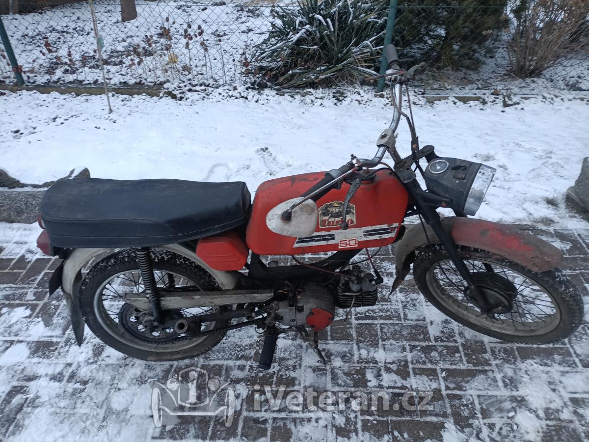 Prodám Jawa 23 Mustang štitek sčislovan s motorem, motor řadi, točí se.