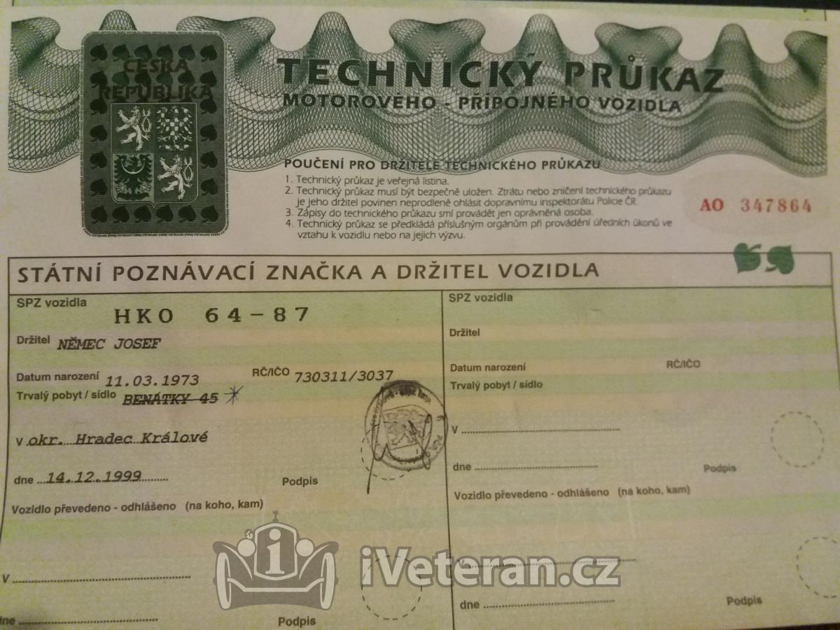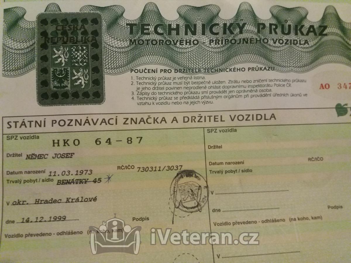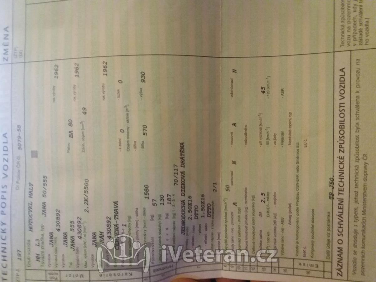 Prodám doklady-technický průkaz na jawu.