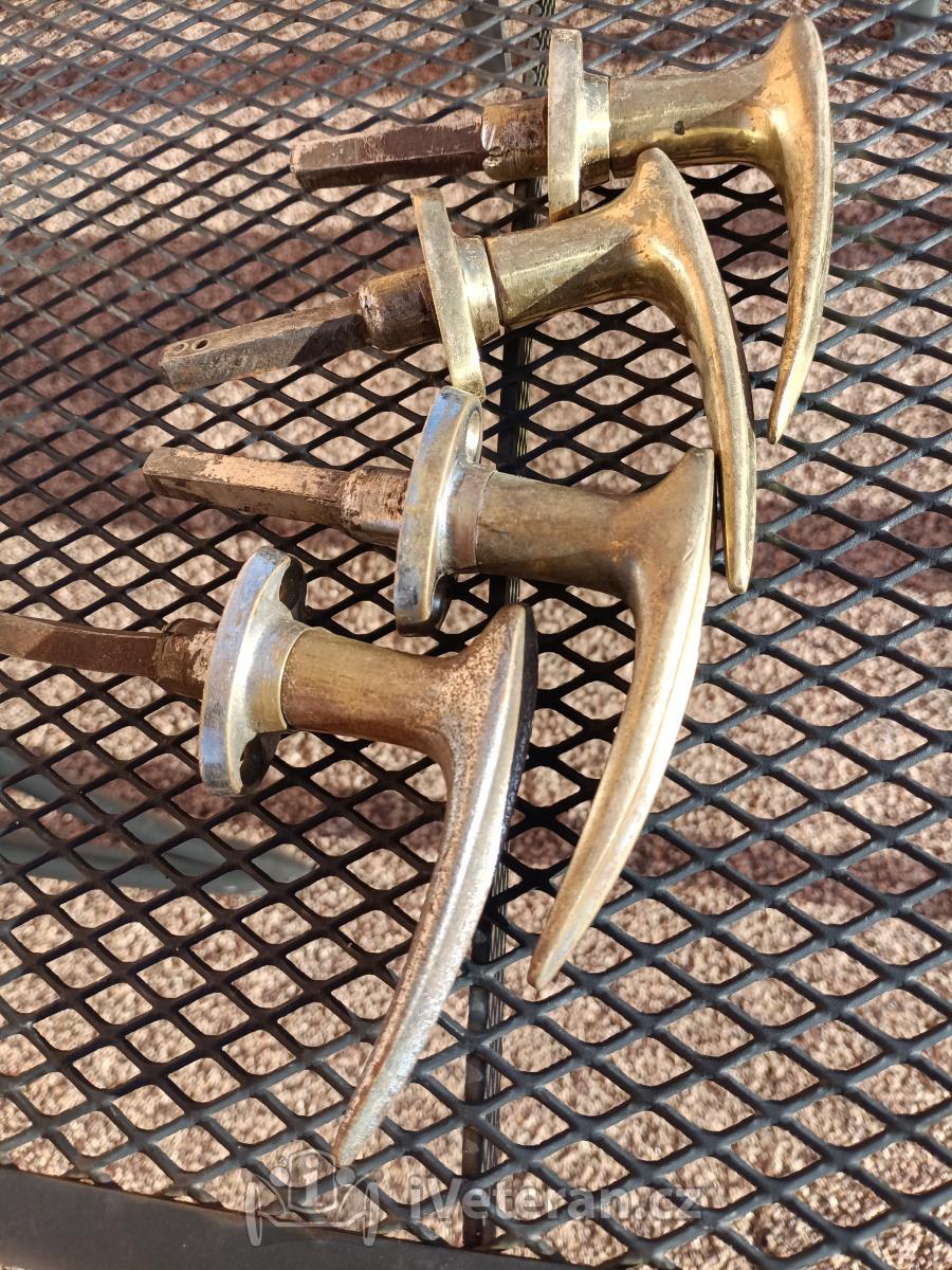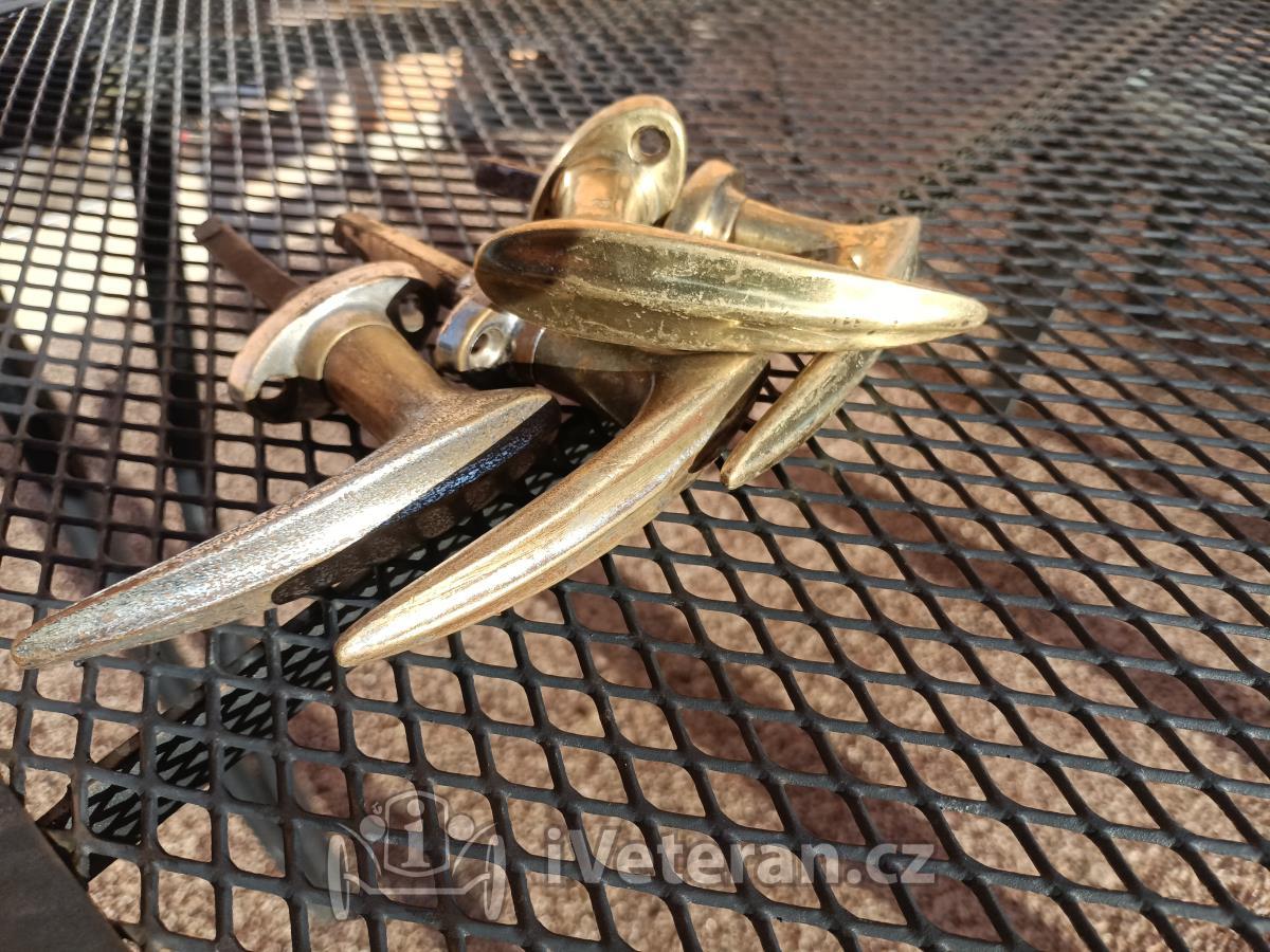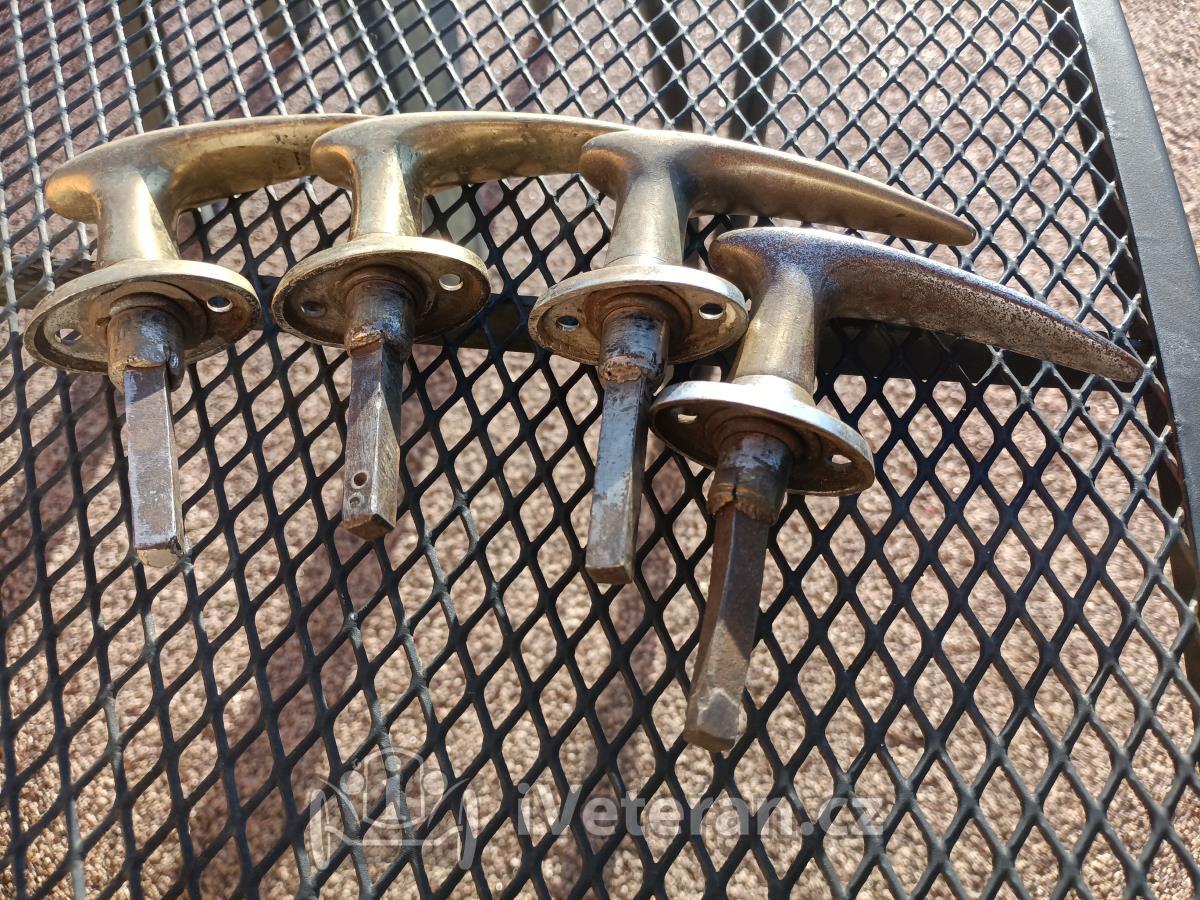 Prodám 4 venkovní mosazné kliky dveří Tatra, Aero, Praga, Škoda a jiné značky, výměna možná.