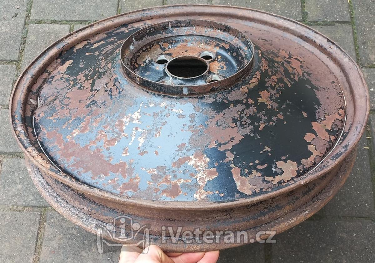 originál německý disk 3x19 Hering v nálezovém stavu, v super top stavu, s kroužkem a přípravou na poklici na německé menší předválečné automobily dkw bmw Opel Hanomag atp, alternativně na armádní Infanteriekarren If8, disk v krásném zachovalém stavu, nepomlácený a nepokřivený, díry na šrouby OK, průměr 51 cm, šířka ca 7.5 cm, rozteč děr 4x100 mm, středový otvor 6 cm, moc pěkně značený na disku a v ráfku pod pneu, osobní odběr Vysočina nebo Přerov po dohodě, jinak zaslání dle tarifu (ČP, PPL), v případě dotazů mě neváhejte kontaktovat, více foto zašlu rád na požádání