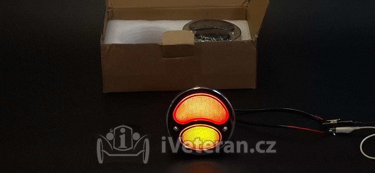 Dva kusy zadních světel na autoveterány. Světelný zdroj jsou led desky, které mají zanedbatelnou spotřebu, ale veliký výkon nepůsobí rušivě, vypadají dobově a nezatěžují dynamo Vašeho historického vozu. Červeně svítí poziční světla, výrazně červeně brzdová světla a oranžově blinkr. CENA JE ZA PÁR SVĚTEL.