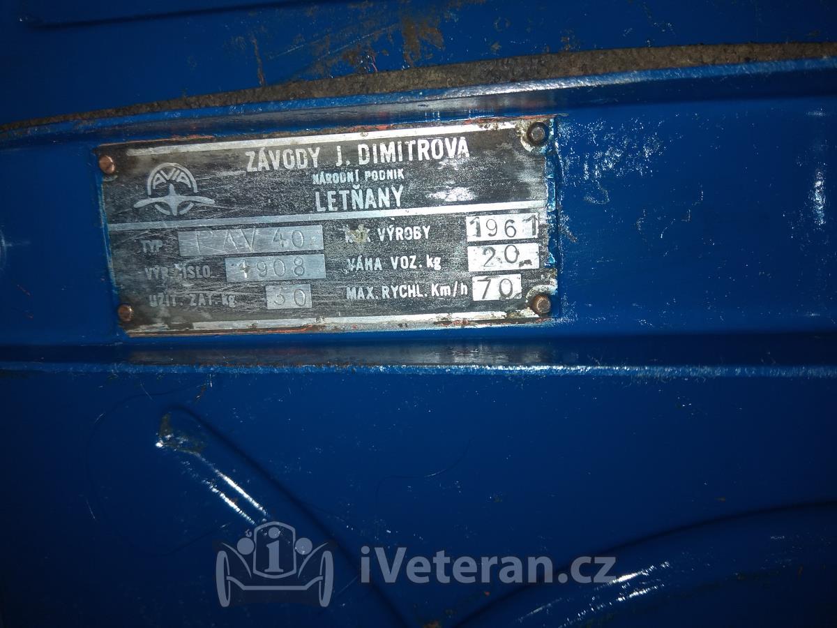 Prodam privesny vozik PAV 40. Vozik je ve slusnem stavu, urcen na renovaci. Ma vyrobni stitek. Nikde neni prohnily.Chybi jen viko a kolecko, neni problem dokoupit bud na burze nebo v replice. Vse originali, svetlo, odrazky. Pri platbe na ucet predem, je doprava zdarma po cele CR.