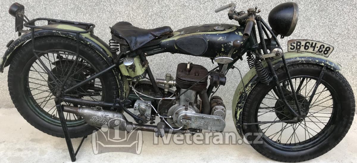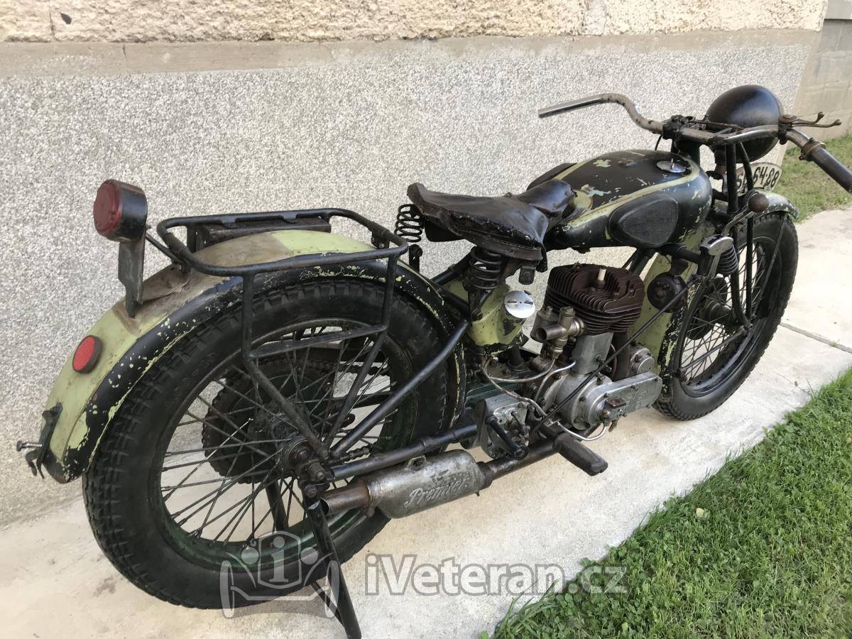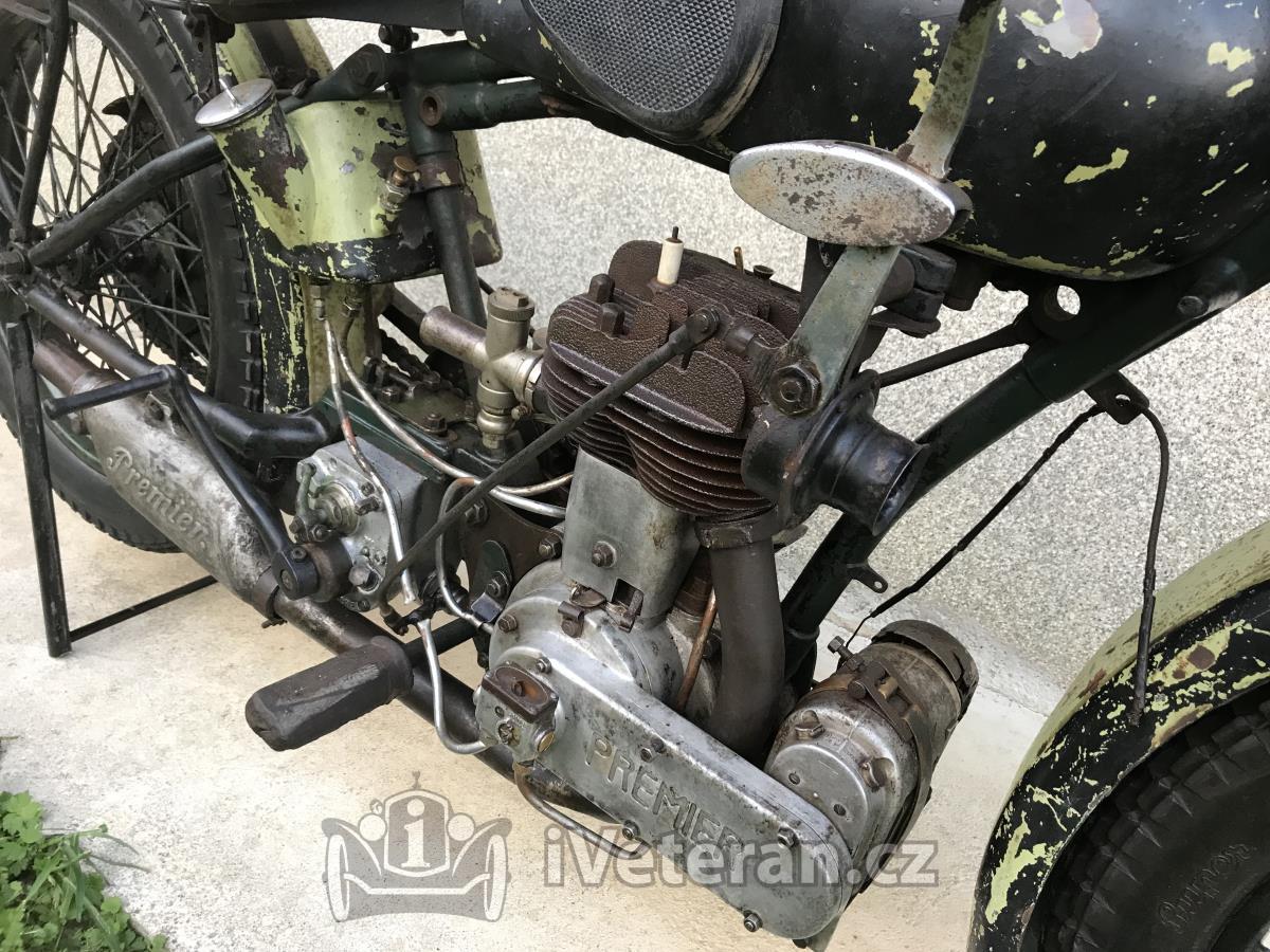 Predam Ceskoslovensky predvojnovy motocykel Premier 500 sv, v stave jak dojazdil. Motocykel ma stitok na rame, ram ma cislo. Motor je cely pohyblivy so silnou kompresiou, nedolamany, nedobuchany, kartery nezoxidovane, cerpadlo Omega, prevodovka Sturmey Archer aj s radickou na nadrzi, toci sa, spojka vypina, dvojsupatkovy karburator Amac s dvojpackou na riaditkach (vzduch + odtrh zo zapalka), zapalovanie Bosch, plyn “rychlopal” CSR patent Praha. Klaxon Bratri Prchalove, 4” pneu, 200 mm brzdove bubny, brzdia. Pripojenie pre sidecar. Viac info telefonicky. Nie sms. Nerezervujem.