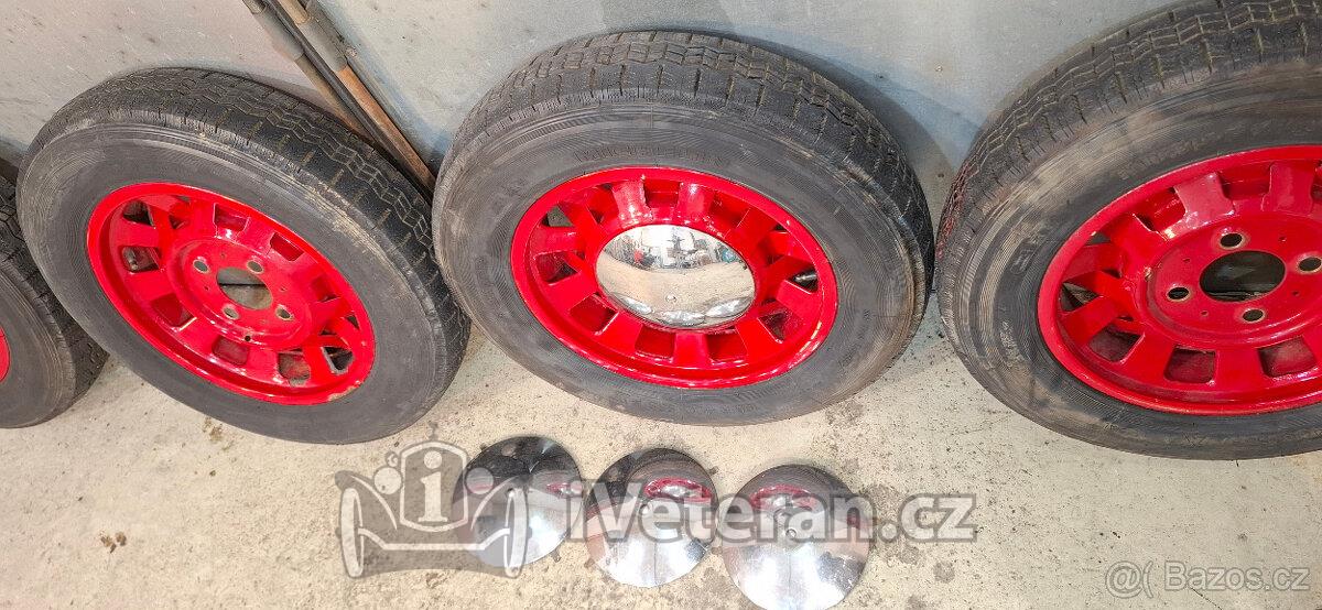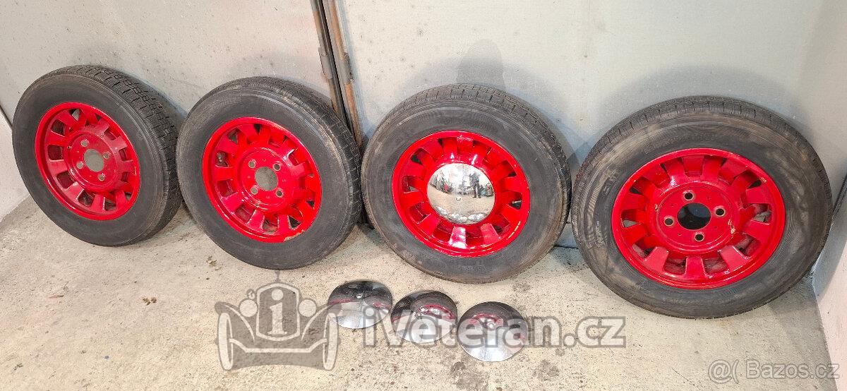 Sada disků s pneu Michelin. Sundáno z běžně jezdícího vozu, pneu v perfekt stavu tak 80%, disky jen nasadit na vůz. Rozteč šroubů 130 mm, středový otvor 84 mm. Včetně chromových poklic. Pasuje na Škoda Popular, Rapid, Felicia, Octavia, Spartak, Renault, Peugeot, Citroen,...