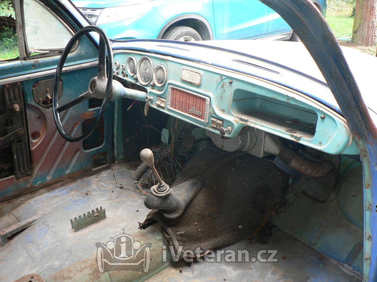 Prakticky bez koroze, motor se točí, v.č. motoru a šasí 397484, obsah 1089ccm, tak jak je na foto plus komplet skla, podnárazník, atd. Napište nebo zavolejte, rád odpovím. Mohu poslat více foto, tam je vidět, co vše je k vozu, víc se nevešlo. Je vyměněná střecha, byla prý pobitá, velmi pěkně, vše pasuje (skla). Velmi vhodná k renovaci. Děkuji.