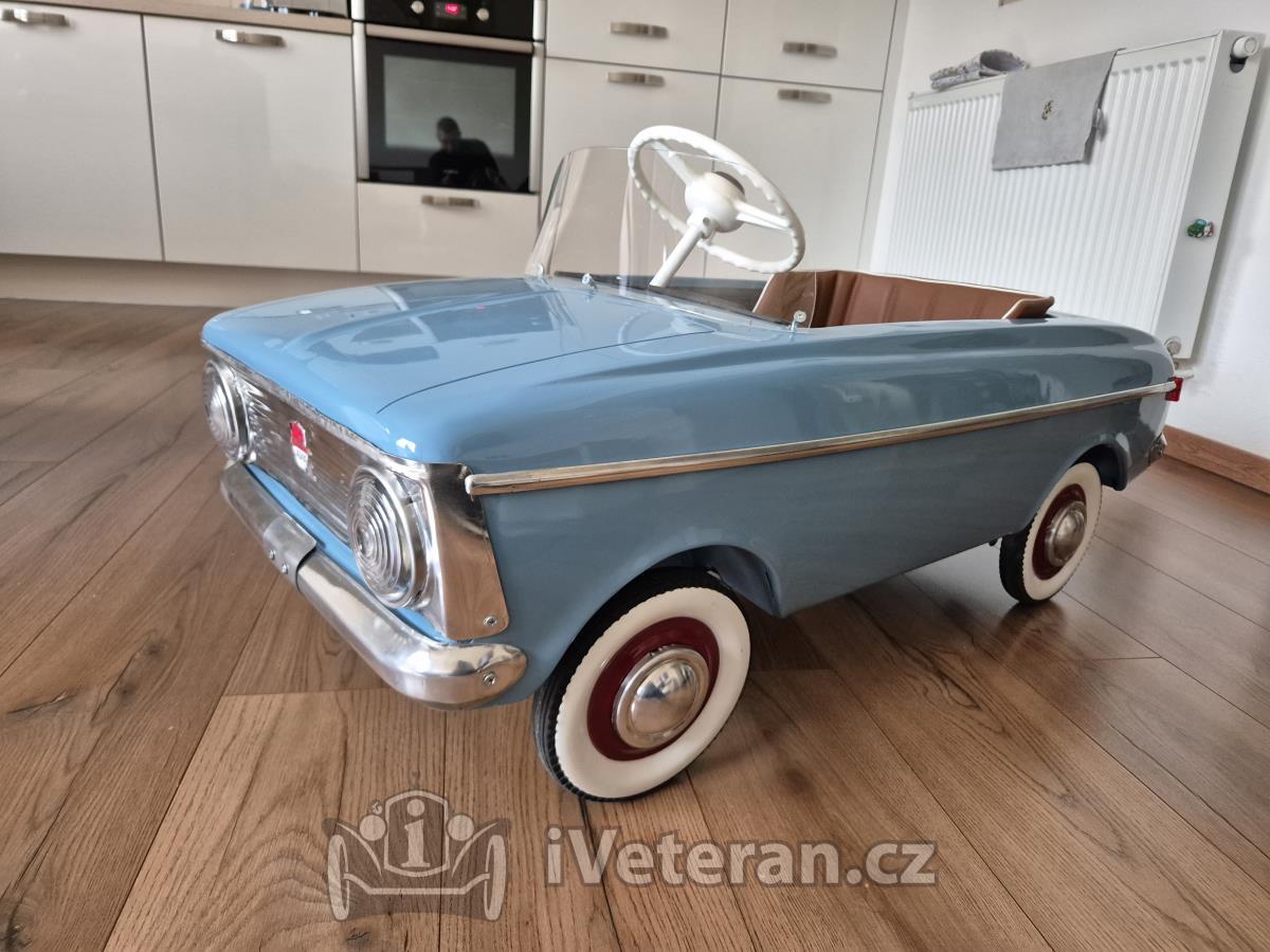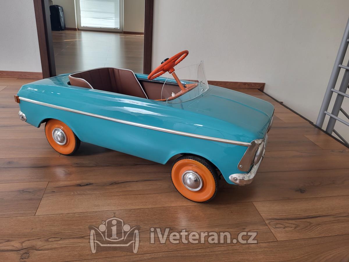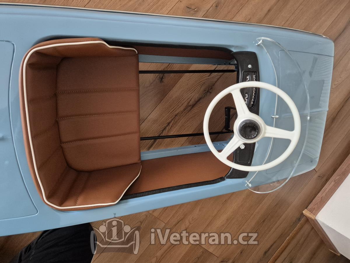 Autíčko po renovacii, rok 1974, všetko nové, šlape, trúbi, svieti. Komplel nový lak, zrenovovaný mechanizmus, nové diely ako maska, listy, sedadlo, svetla, volant, plexi....