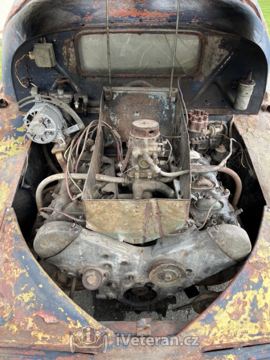 Chybí původní čelní třídílné okno a střešní okno Webasto, kola jsou například z Volhy.