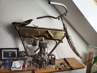 Rok výroby kolem roku 1912 obsah 636 cm3. K motocyklu je ještě pár věcí které nejsou na fotce, ráfky,pneu, originální štítek, atd. Zadní část rámu chybí.