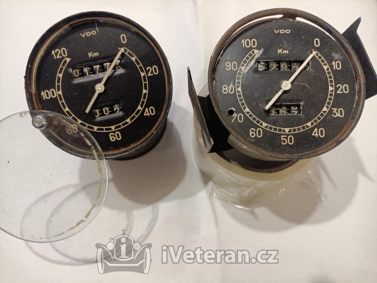 Prodám VDO dva tachometry 100, 120 km, výměna za auto a motodily, příslušenství pro veterány možná.