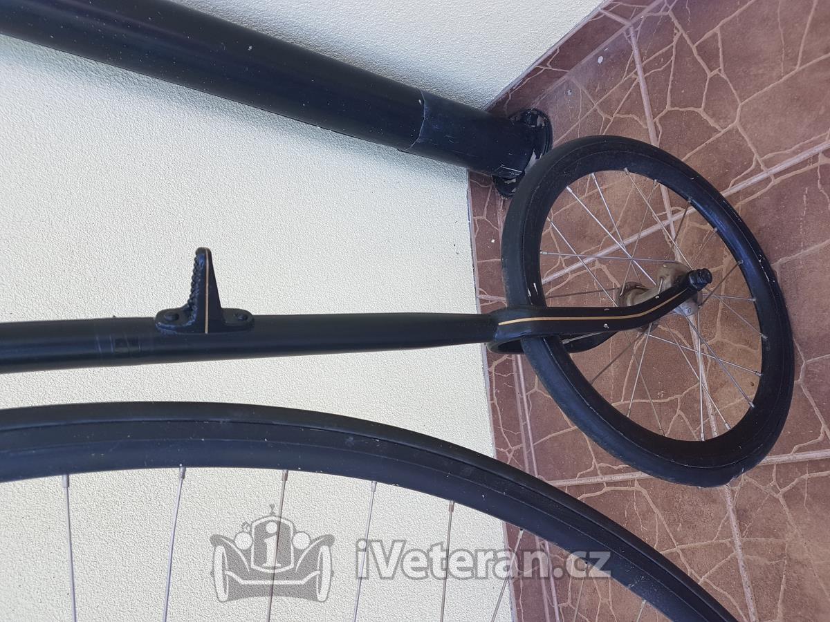 Vo velmi peknom stave, leskle diely su poniklovane, kolo bolo pouzivane ale je velmi pekne. Ma zlate linky.