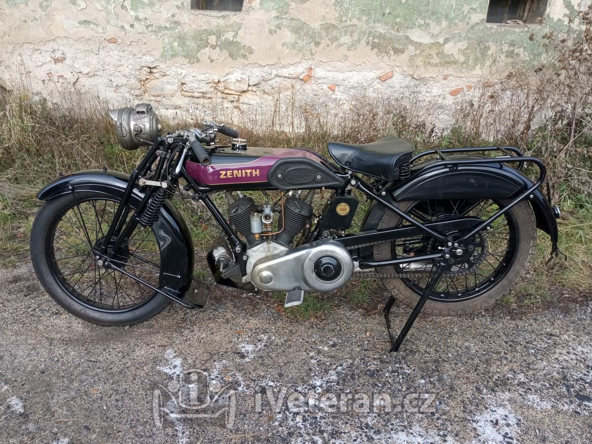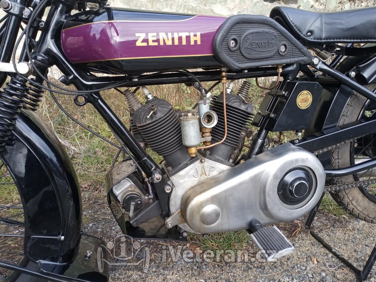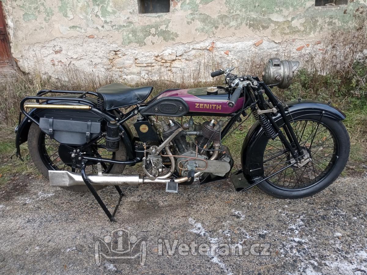 Motocykl Zenith Model 6-80, dvouválec 678 ccm, r.v. 1927, po renovaci, bez dokladů. Motocykl je k vidění v Bystřici nad Pernštejnem, podrobnosti telefonicky, další fotky vážným zájemcům rád zašlu e-mailem, cena k jednání.