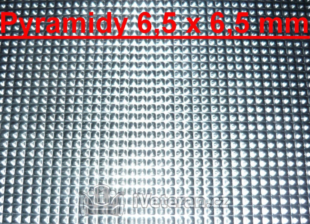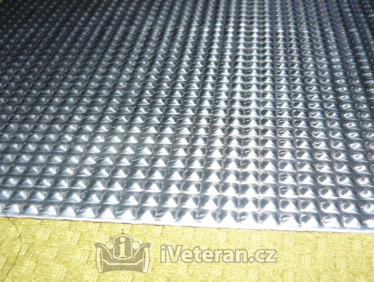 na stupačky hlavně pro vozidla Tatra (11,12,30...) Rozměr plechu je 3x1 metr, výchozí tloušťka před prolisováním byla 0,8mm. K dispozici je poslední kus jemnějšího plechu, pyramidový už není.  Cena 5000,-Kč. Další možno dodat už jen při objednávce 20 kusů.