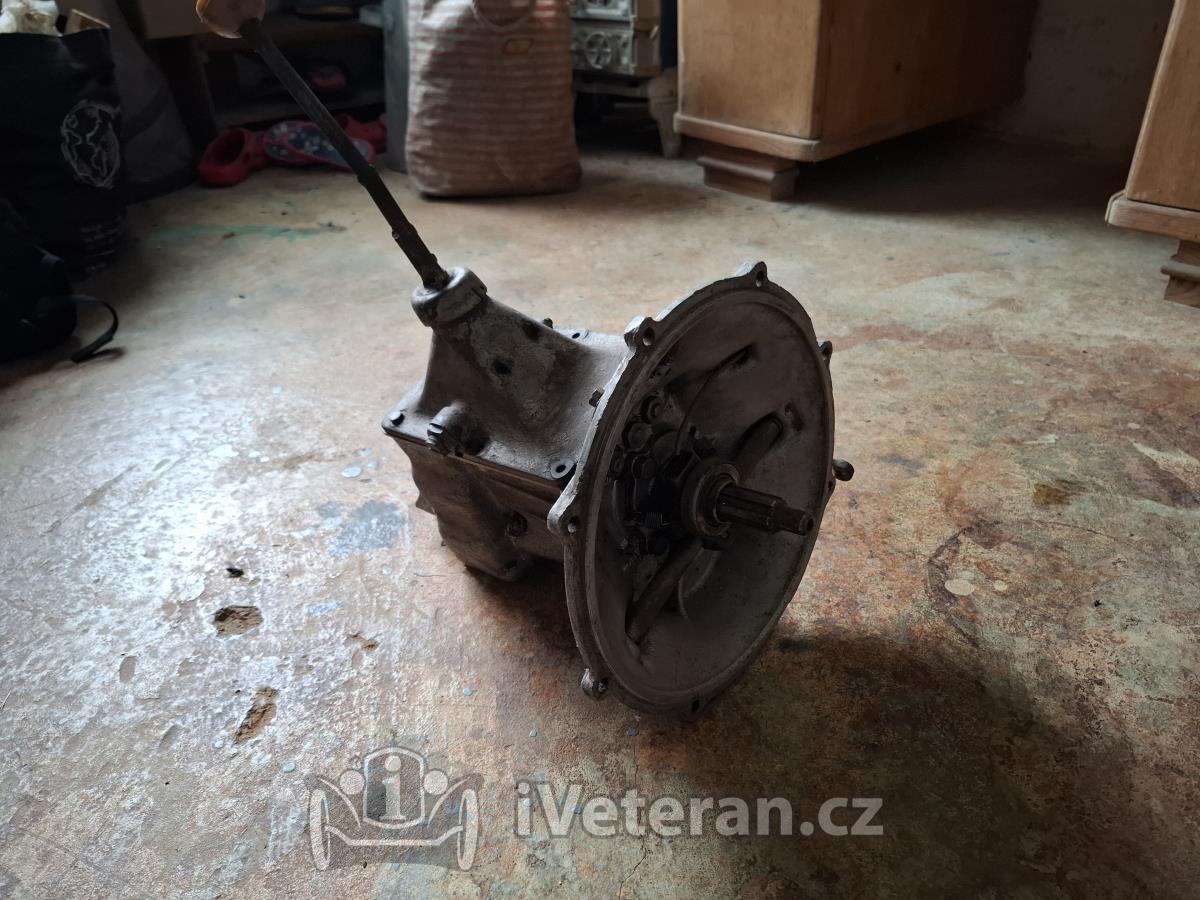 Převodovka na veterána neznámého typu, dá se protáčet, uložená v garáži mnoho let.