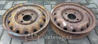 2 ks disky na Škoda 1101 a 1102 Tudor v nálezovém stavu, stav viz foto, koroze především v ráfku pod pneu, k renovaci na otryskání, jinak slušné a použitelné, rovné, jeden kus opravený okraj za tepla, výroba 1949, díry na šrouby OK nevymačkané, bez p..