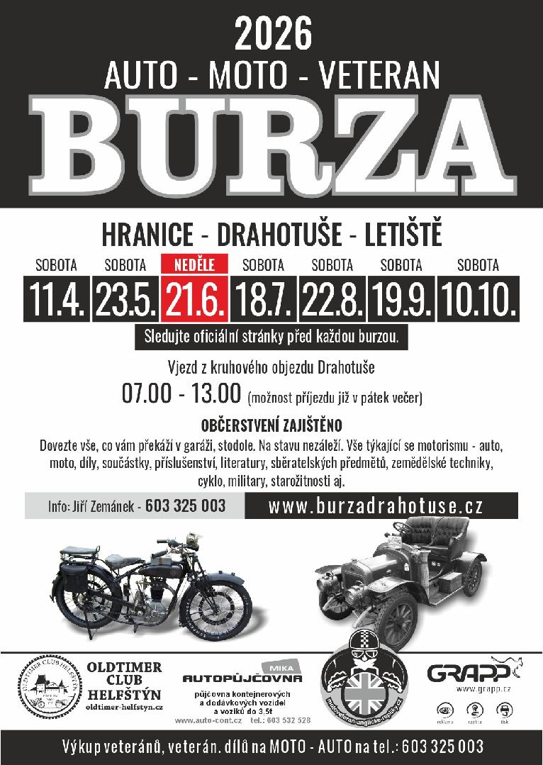 Auto-moto trhy, trhy spotřebního zboží, farmářské trhy. Prodej a předváděcí jízdy nových vozů Dacia. Koupit se tu dá téměř vše, co vás napadne a kdo chce, může klidně i něco prodávat. Více info na: www.trhy-tuhan.cz, nebo na našem Facebooku. Info na tel: 604787900,739651656. Vstupné 40,- Prodejní místo 150,- |